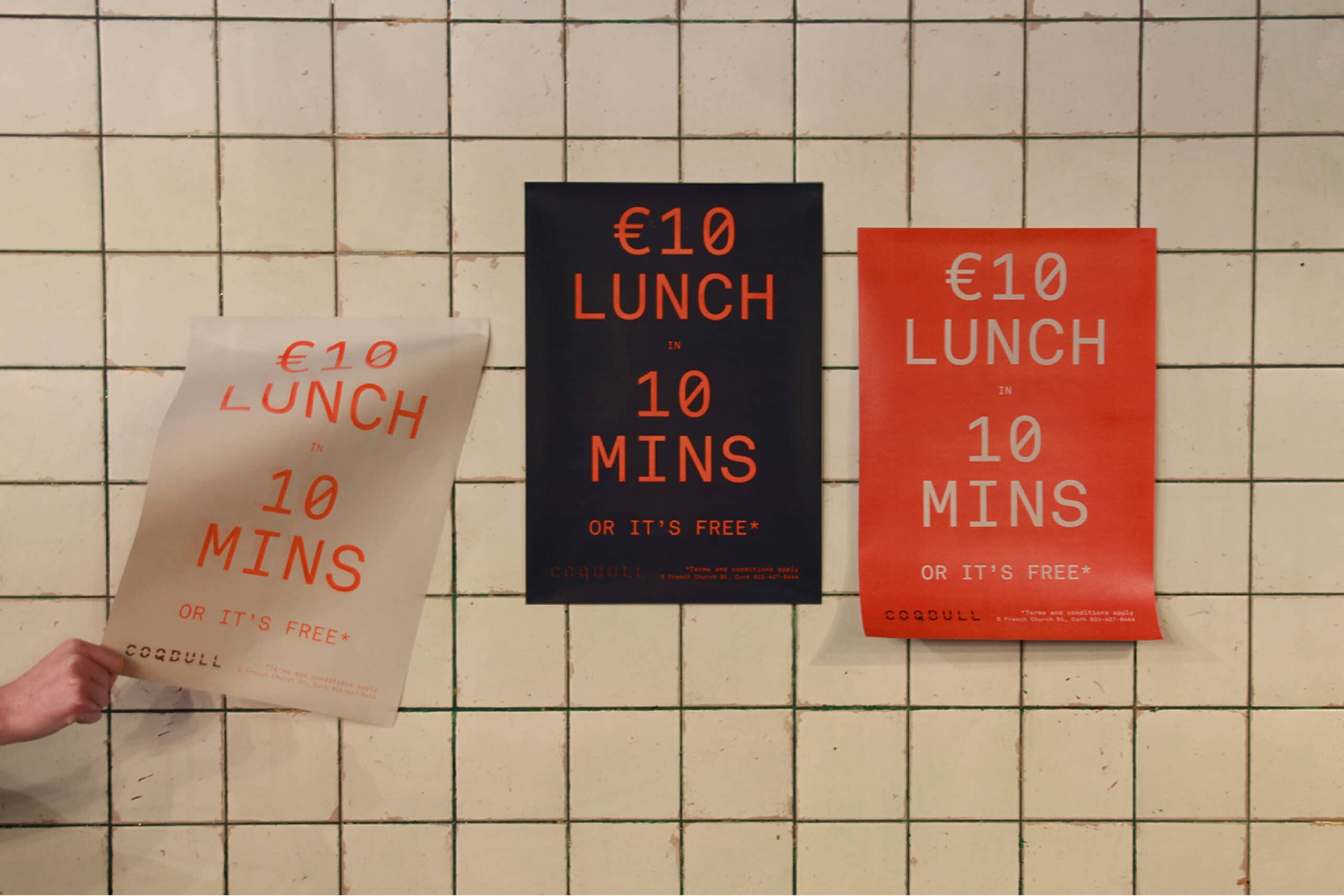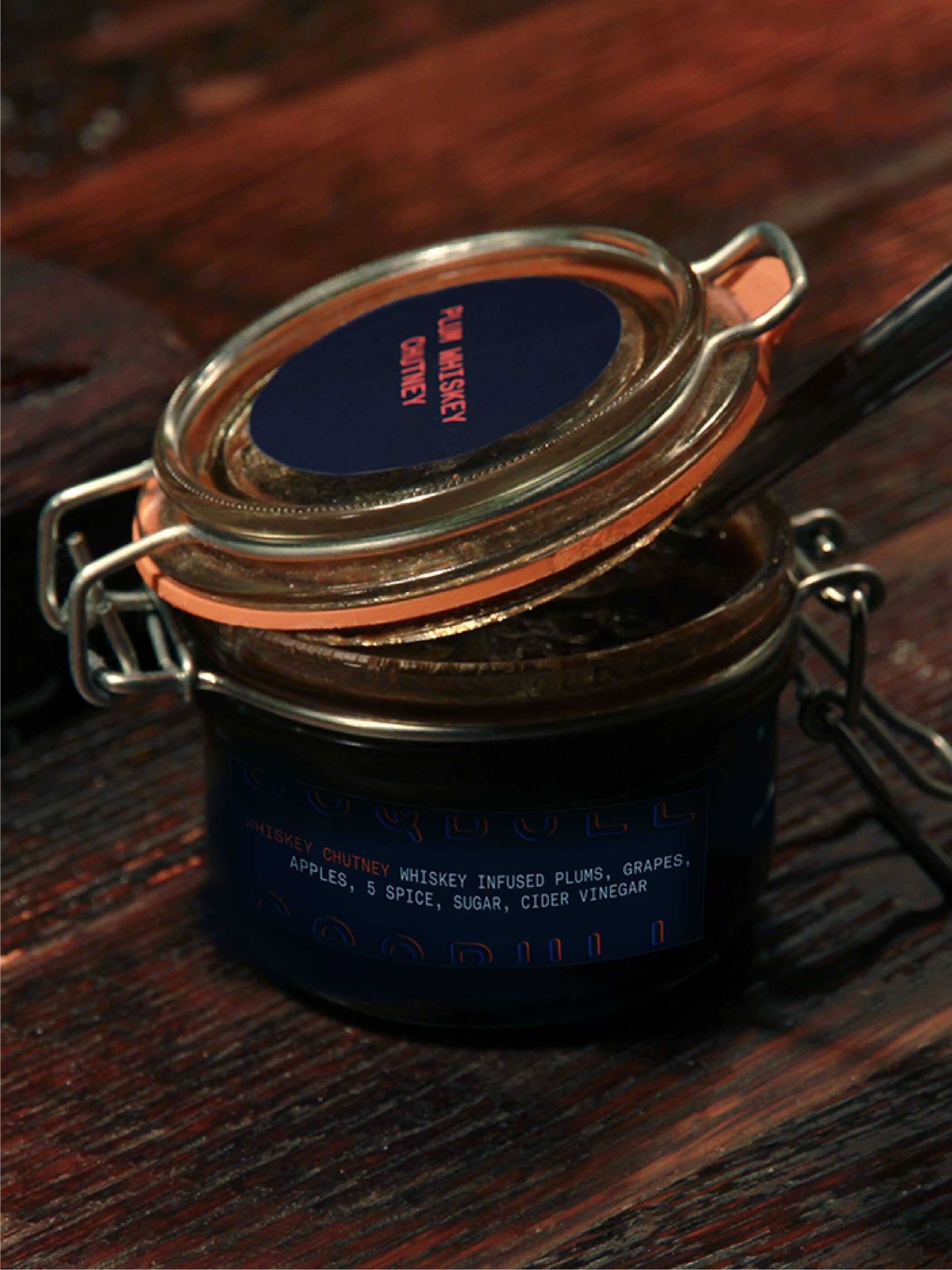 This wild, unruly brand needed an identity to communicate its fun, its fancies, and its flaws. A wordmark edged in vibrant blue and orange is a nod to the grill flames, while a series of splatters and smudges reflects the rubbing, marinating, charring, and burning of the cooking process. And for consistently compelling communications, our Coqbull brand dictionary is essential. It sets the tone for packaging, uniforms, and other marketing collateral.