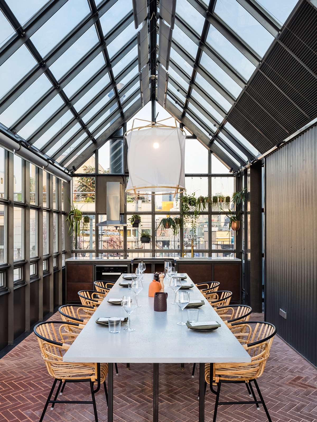 The interior of this seven-story homage to food is entirely ours. From the ground-floor deli, bakery, and café, through hands-on training and discussion areas to the open-air veg beds on the upper levels, we devised a light-filled journey of discovery. At every stage the building tugs at your senses, yet the mood remains calm and collaborative. It’s the heat of the kitchen fused effortlessly with the mindfulness of the library.