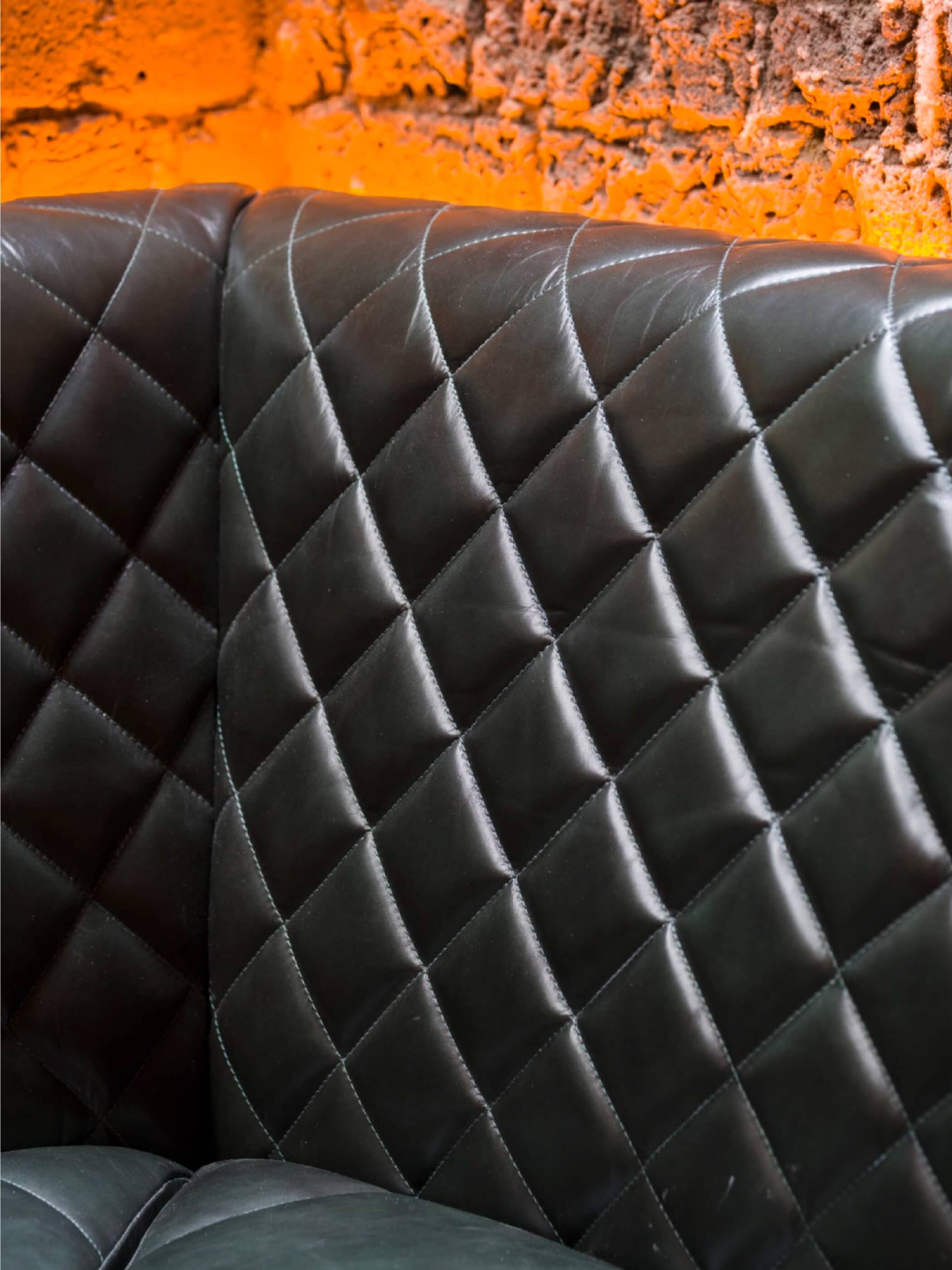 To the exposed brickwork, rough-finished walls, and dark timber we added rich details: a copper bar backed by a wall of vinyl, soft leather sofas with diamond stitching, and plenty of semi-industrial lighting. The upstairs is somewhere to unwind; downstairs is a place to party.