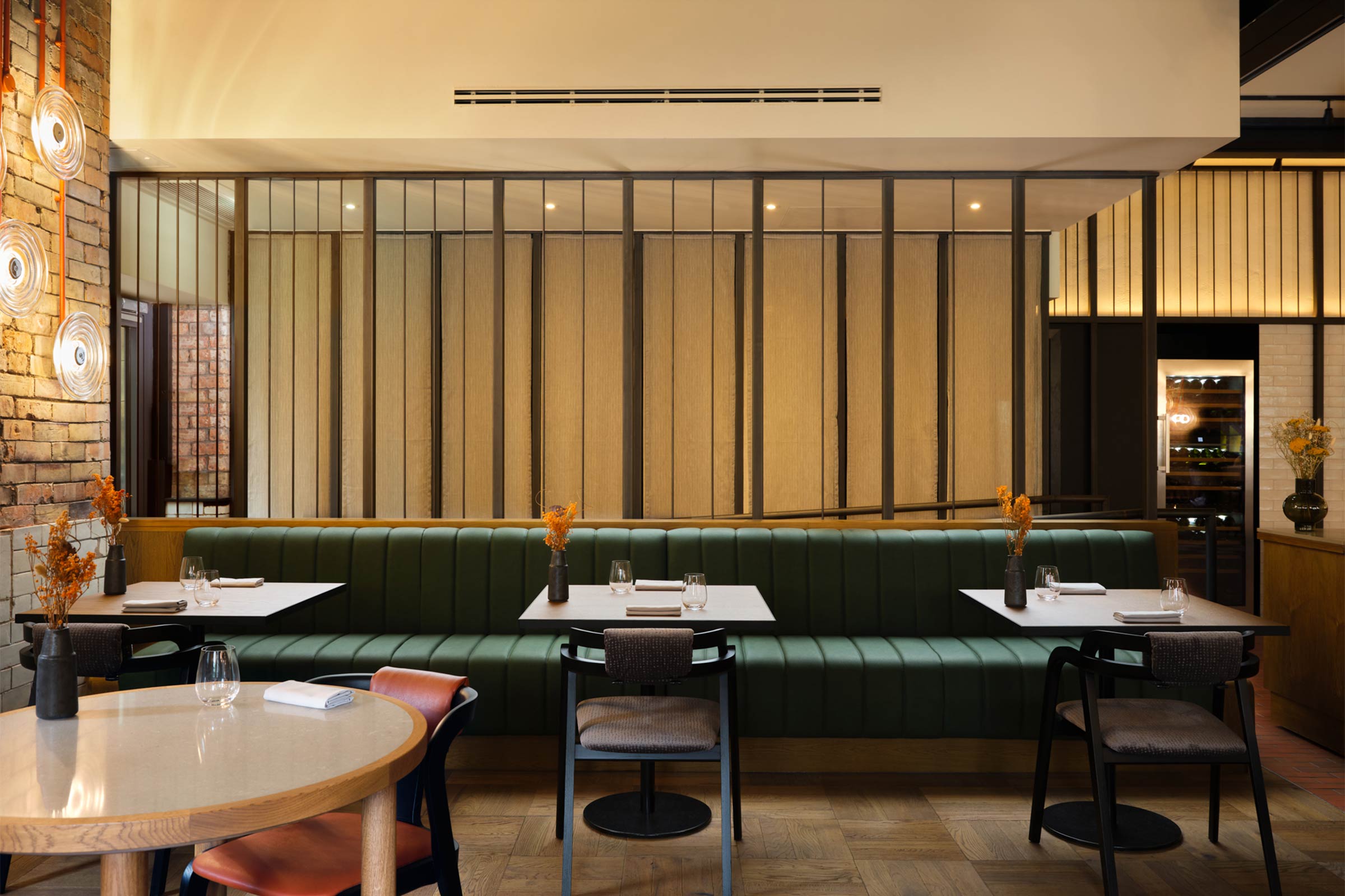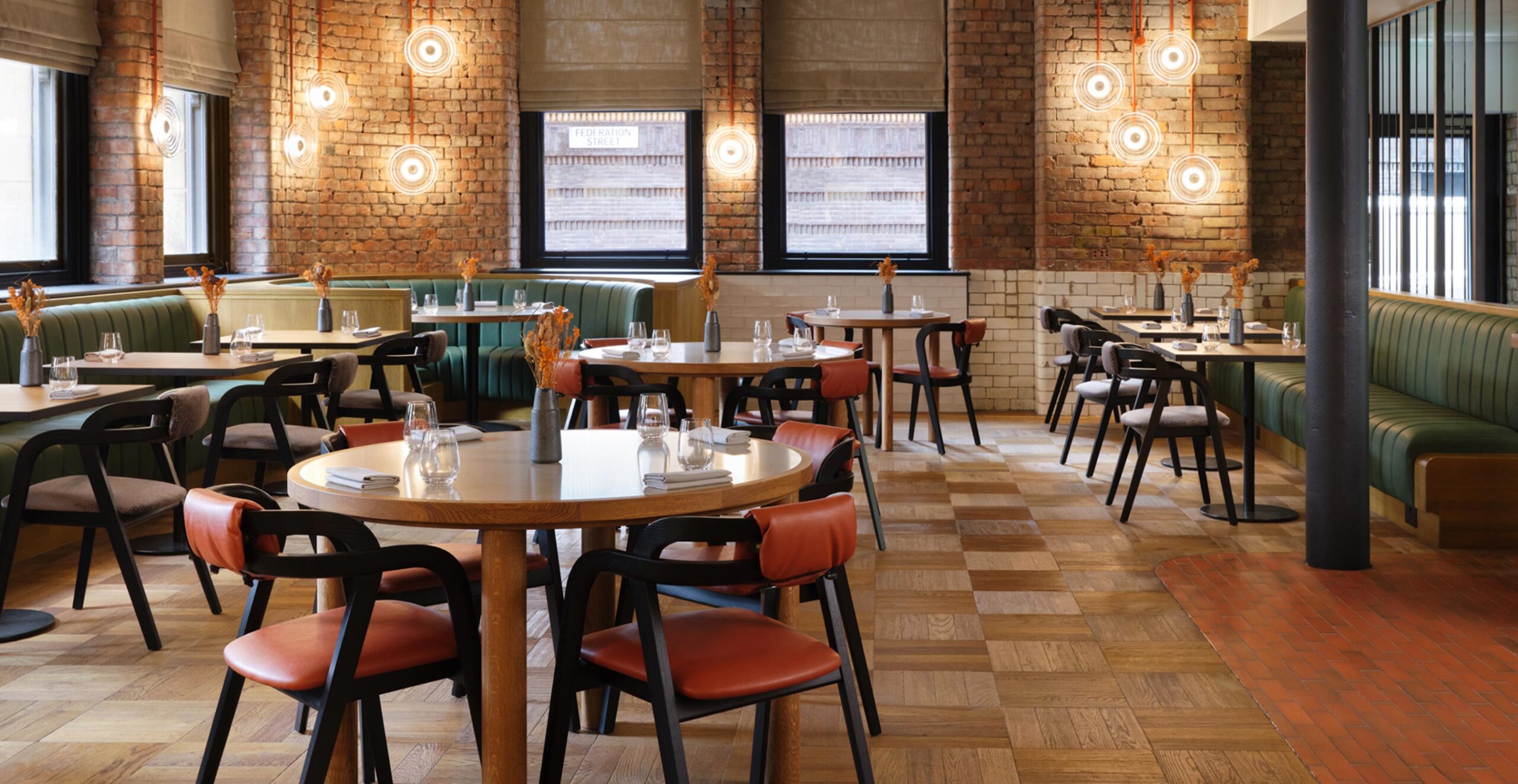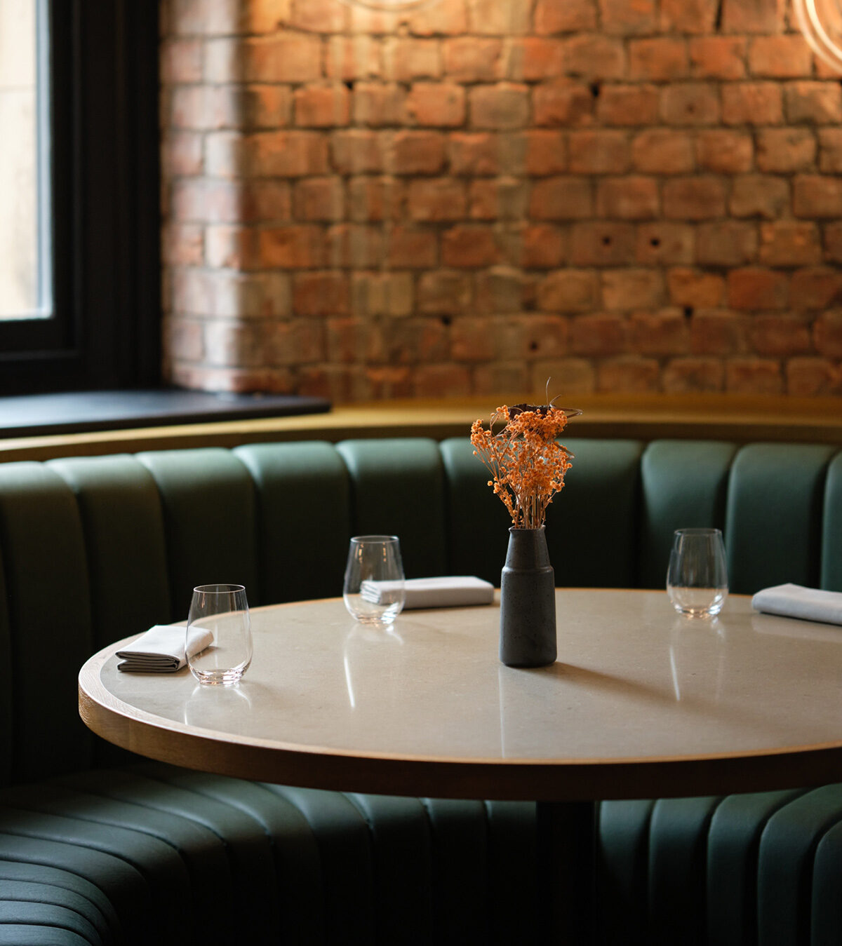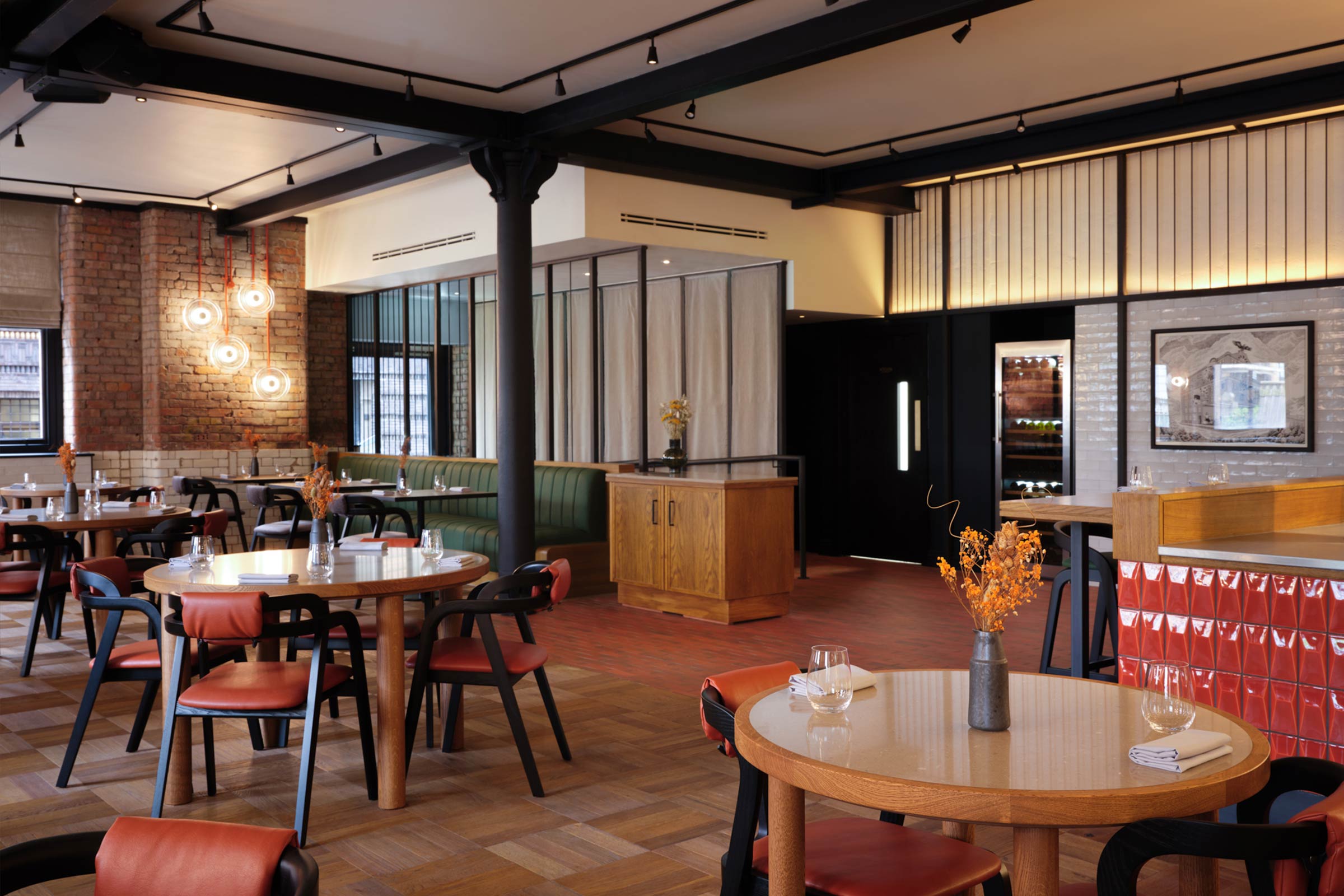 Skof is as down-to-earth as its chef. The building is a former drapery warehouse that wears its Edwardian industrial heritage with pride. Our design revels in the simplicity of bare brick, terracotta tiles, and natural light. The pared-back look is both soft and hard-edged, a blend of urban and natural. In this easygoing space, it’s all about the ambition of the food and the skills on display in the centrepiece kitchen. Skof is warm and welcoming – a showcase for big flavours and unpretentious dining.