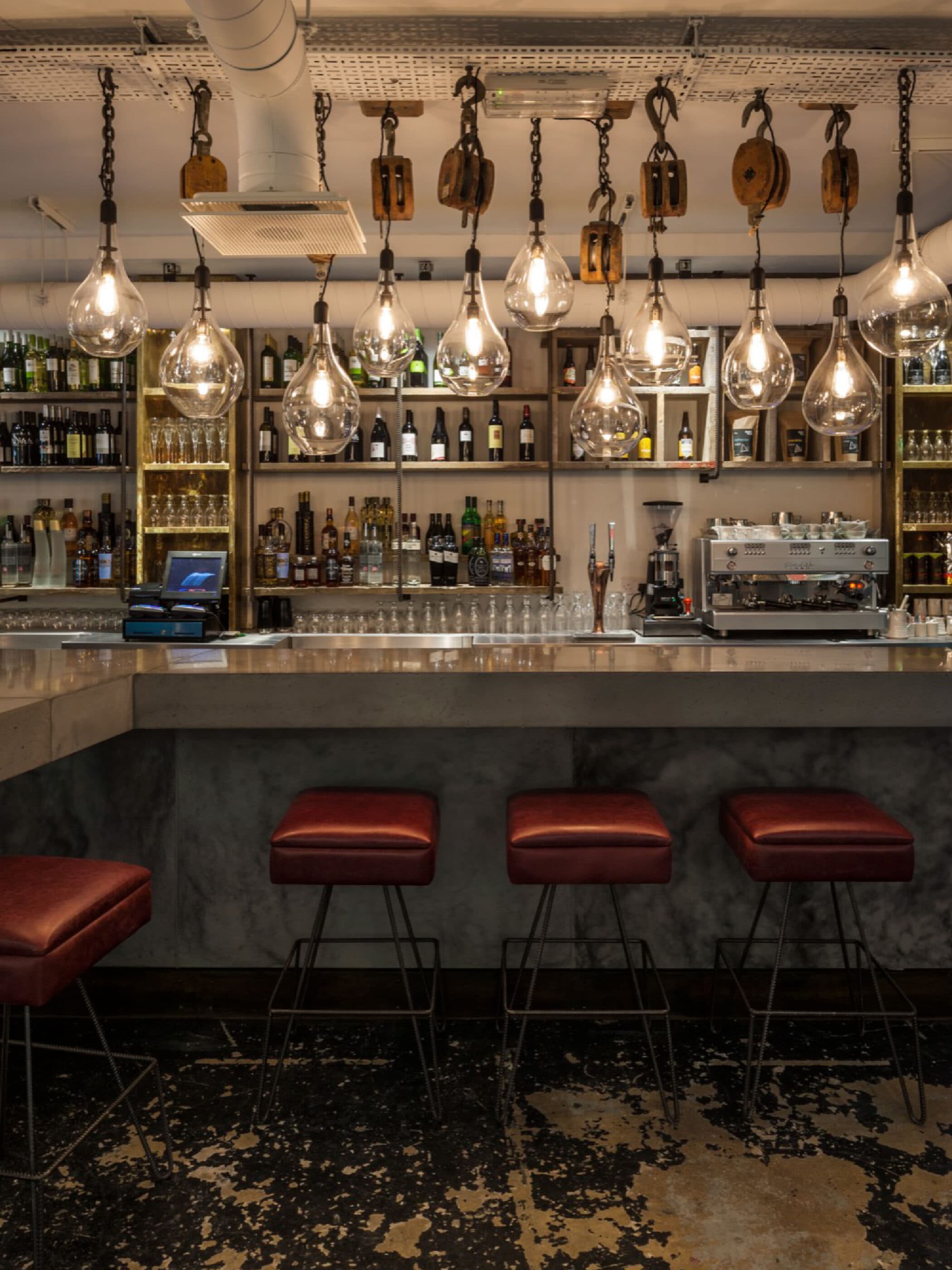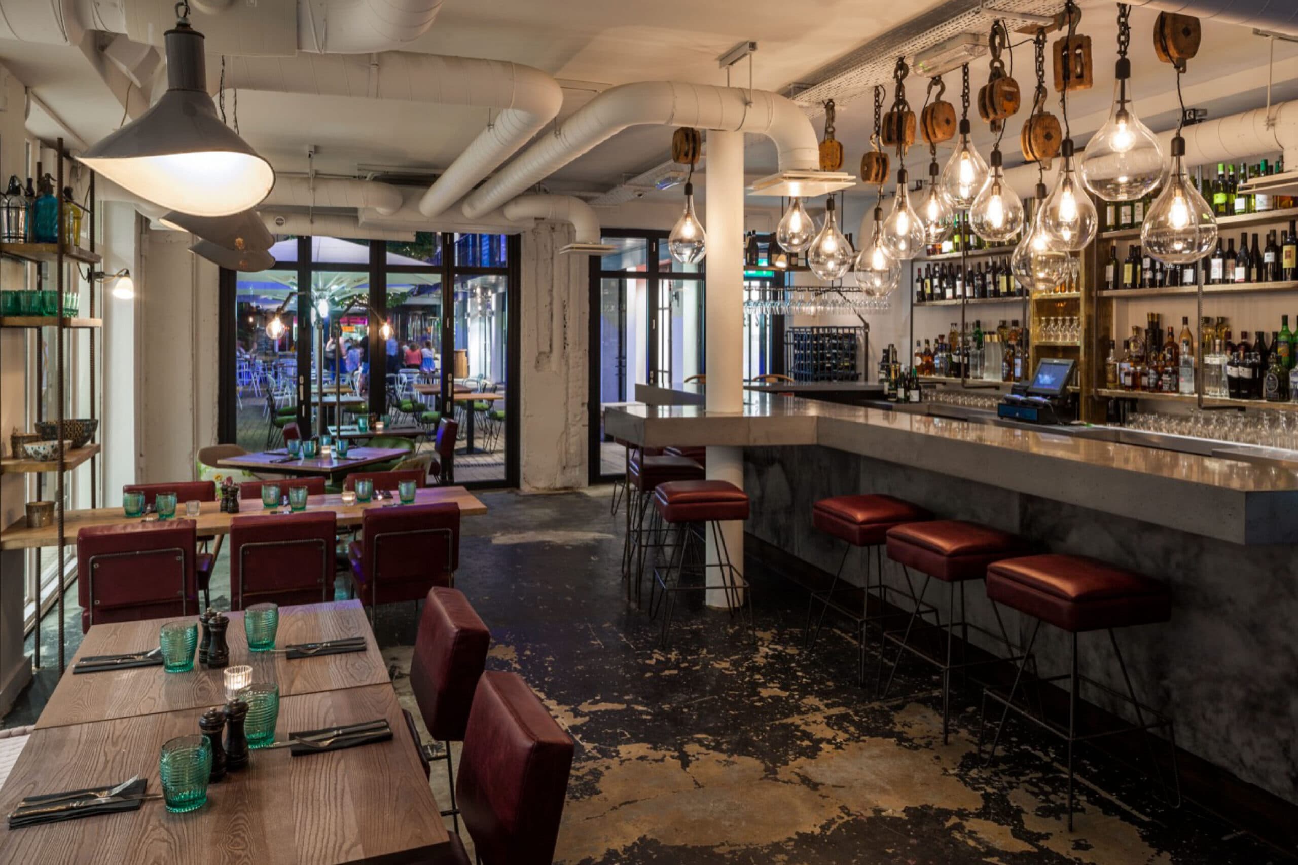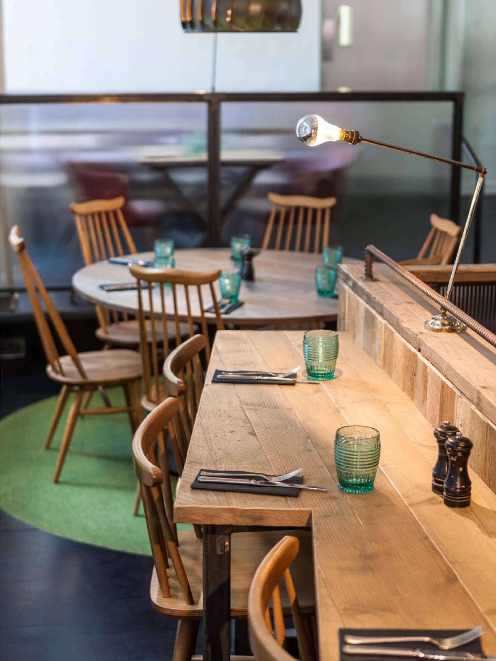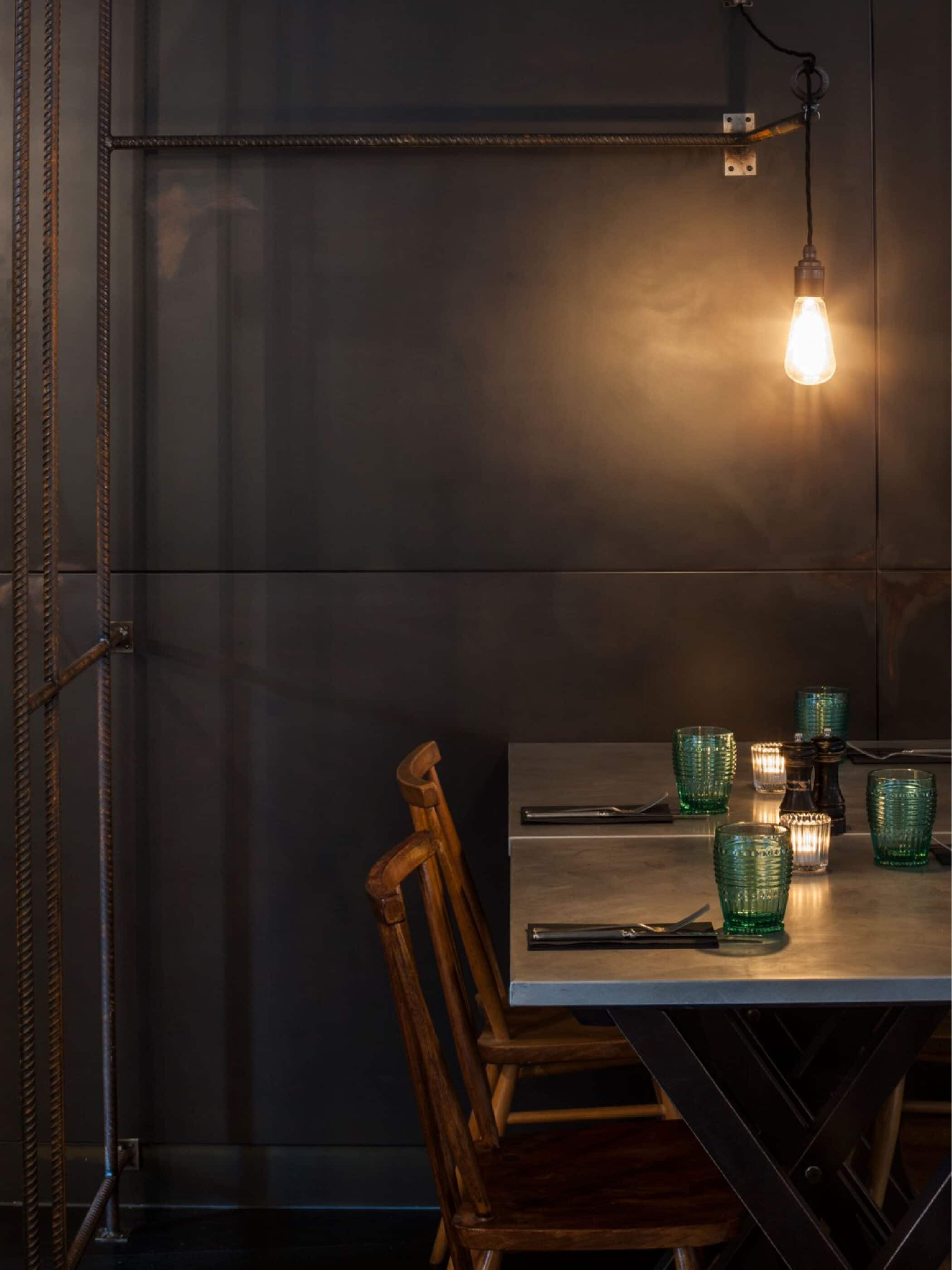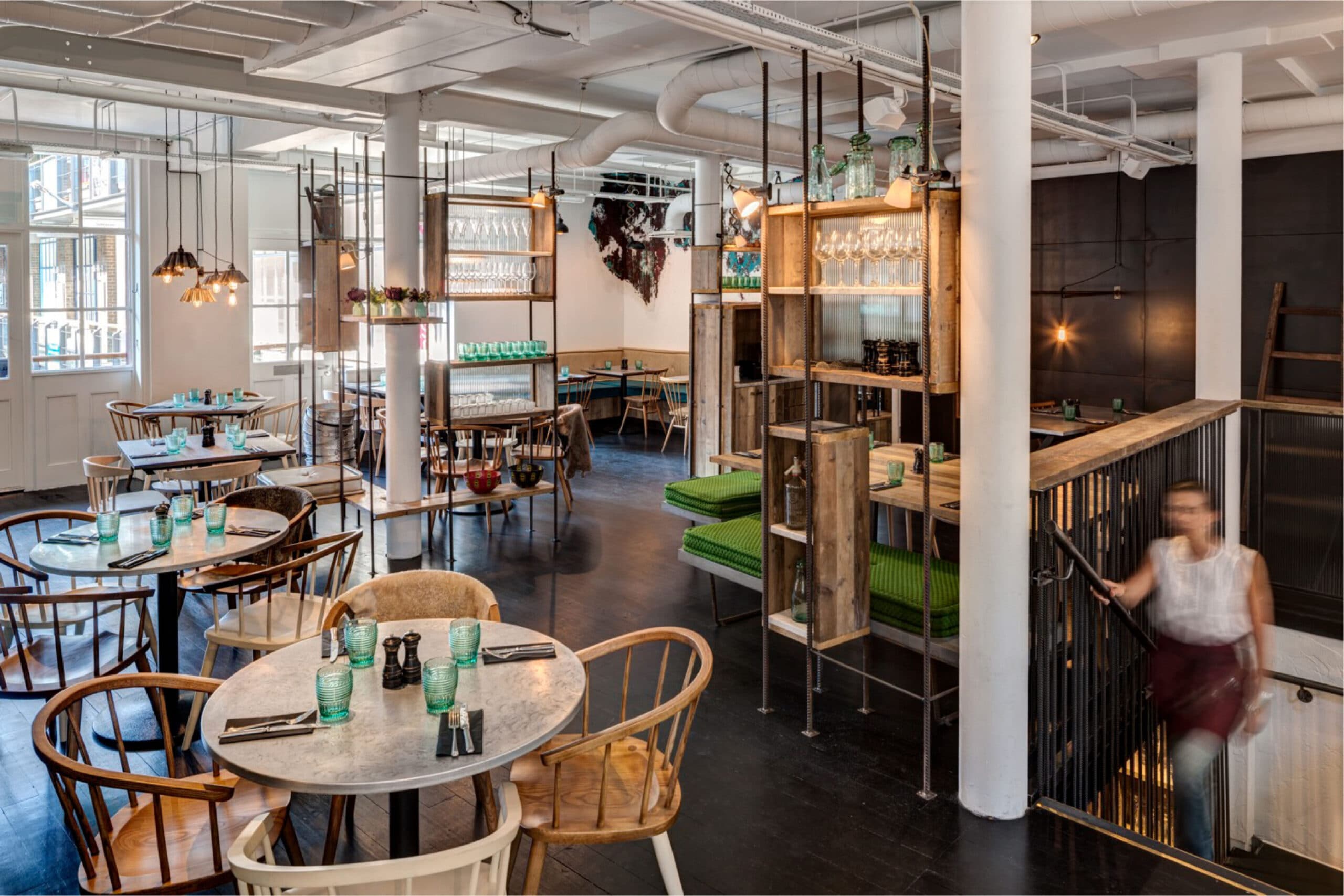 Soft twists add customer appeal to a reclaimed-industrial restaurant interior