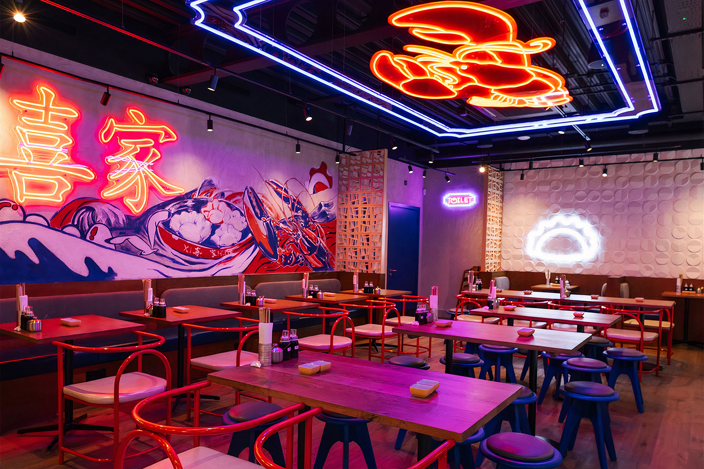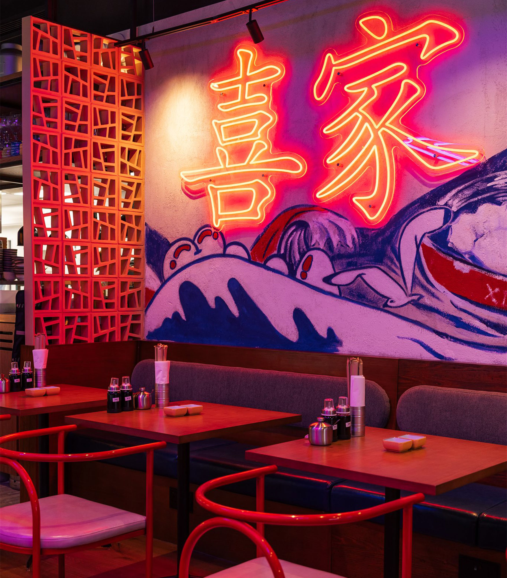Neon-lit authenticity for a Chinese dumpling restaurant